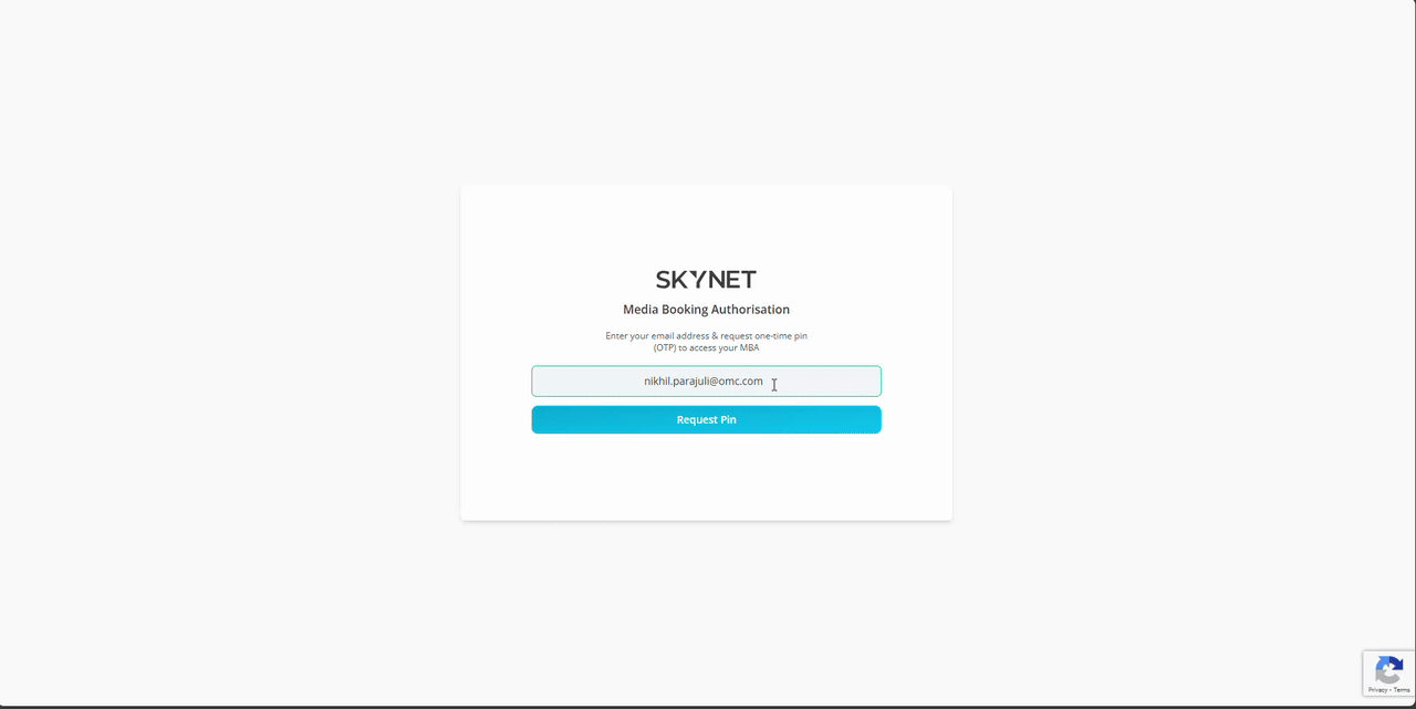 - Click Request Pin. An OTP will be sent to the email address submitted if it matches email address assigned when the MBA was published.