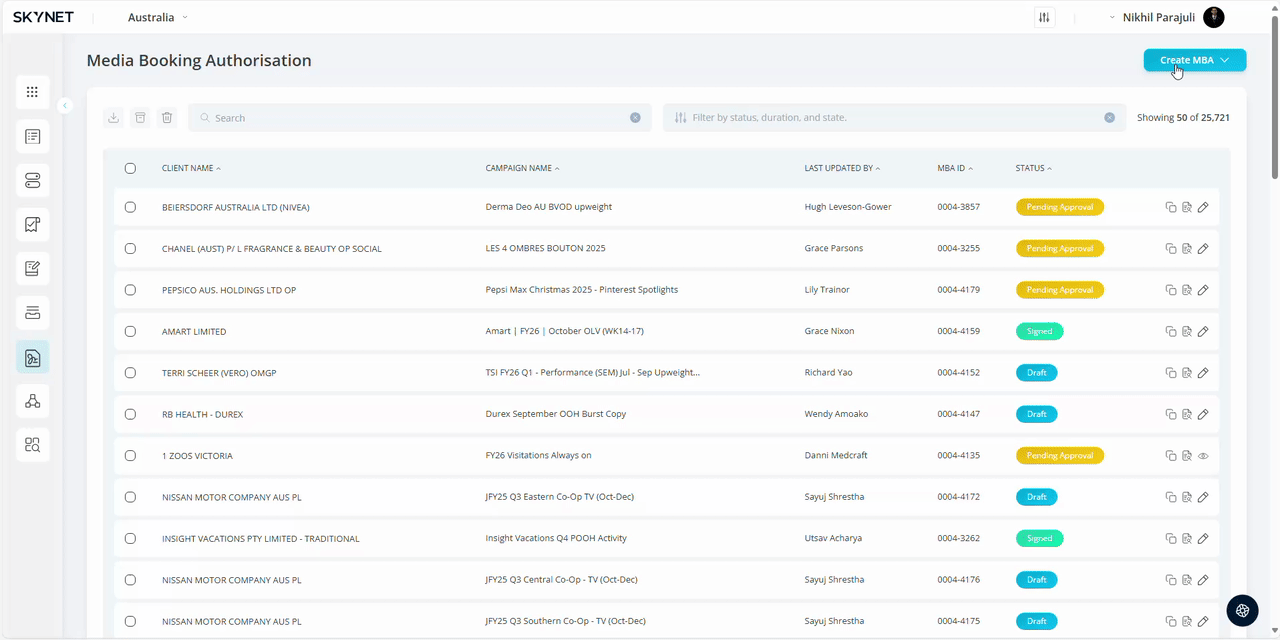 Internal MBA offers a function to maintain a record of all client MBAs that cannot be approved via SKYNET. This feature should be used when a specific client MBA process is mandated.