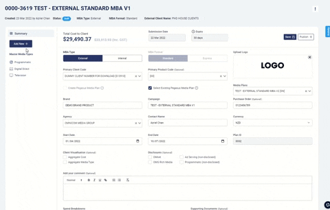 Create New Pegasus Media Plan in MBA Tool (Summary Level)