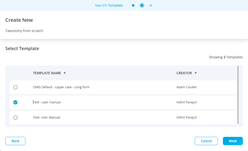 Users can create a taxonomy using an existing taxonomy template. Before building a taxonomy, ensure that the template is created, and the advertiser is assigned to the taxonomy template.