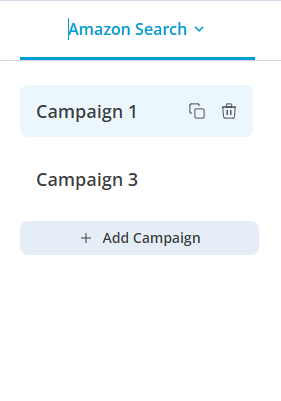 When hovering over a selected campaign, options to duplicate or delete the campaign will appear.