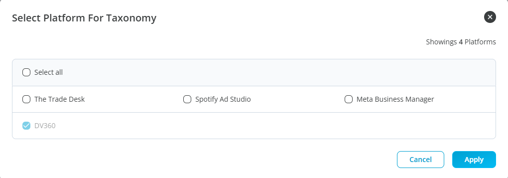 After choosing the platforms, click “Apply.” This will take you to the "Create Taxonomy" page.