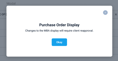 “Changes to the MBA display will require client reapproval.” - If the user confirms, the status of the MBA will be updated to Draft, and the reapproval process can begin once the MBA is saved.