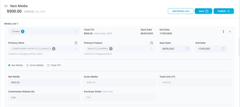 However, if no Purchase Order value is entered on the MBA Summary page, the field will remain editable within each individual media line item.