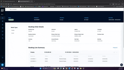 If an activation campaign is no longer running, an approver can reject the booking. Clicking the link will open the booking on the summary page.